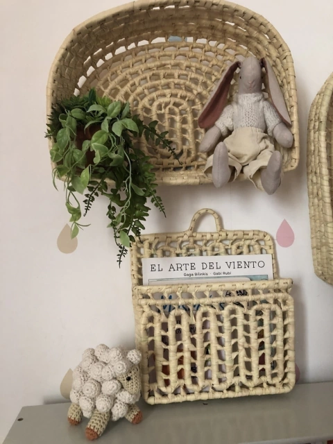 Estante arco iris confeccionado artensanalmente con hojas de palma. Medidas aproximadas 25x40x8.